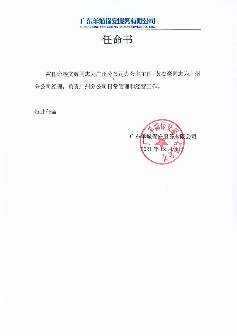 米兰站·网站-米兰MiLan(中国)关于黄杰豪与赖文辉的任命书正式通知